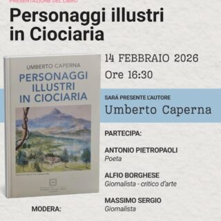 Si terrร questo pomeriggio, sabato 14 febbraio 2026, presso l’Auditorium Comunale di Morolo e a cura della Fondazione Premio Antonio Biondi, la presentazione dell’ultima opera di Umberto Caperna dal titolo “Personaggi Illustri in Ciociaria”,...